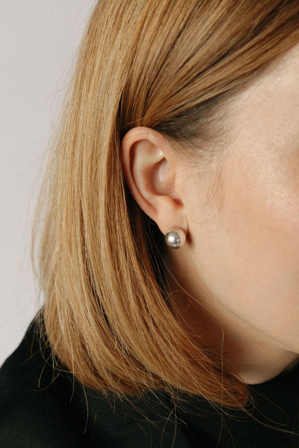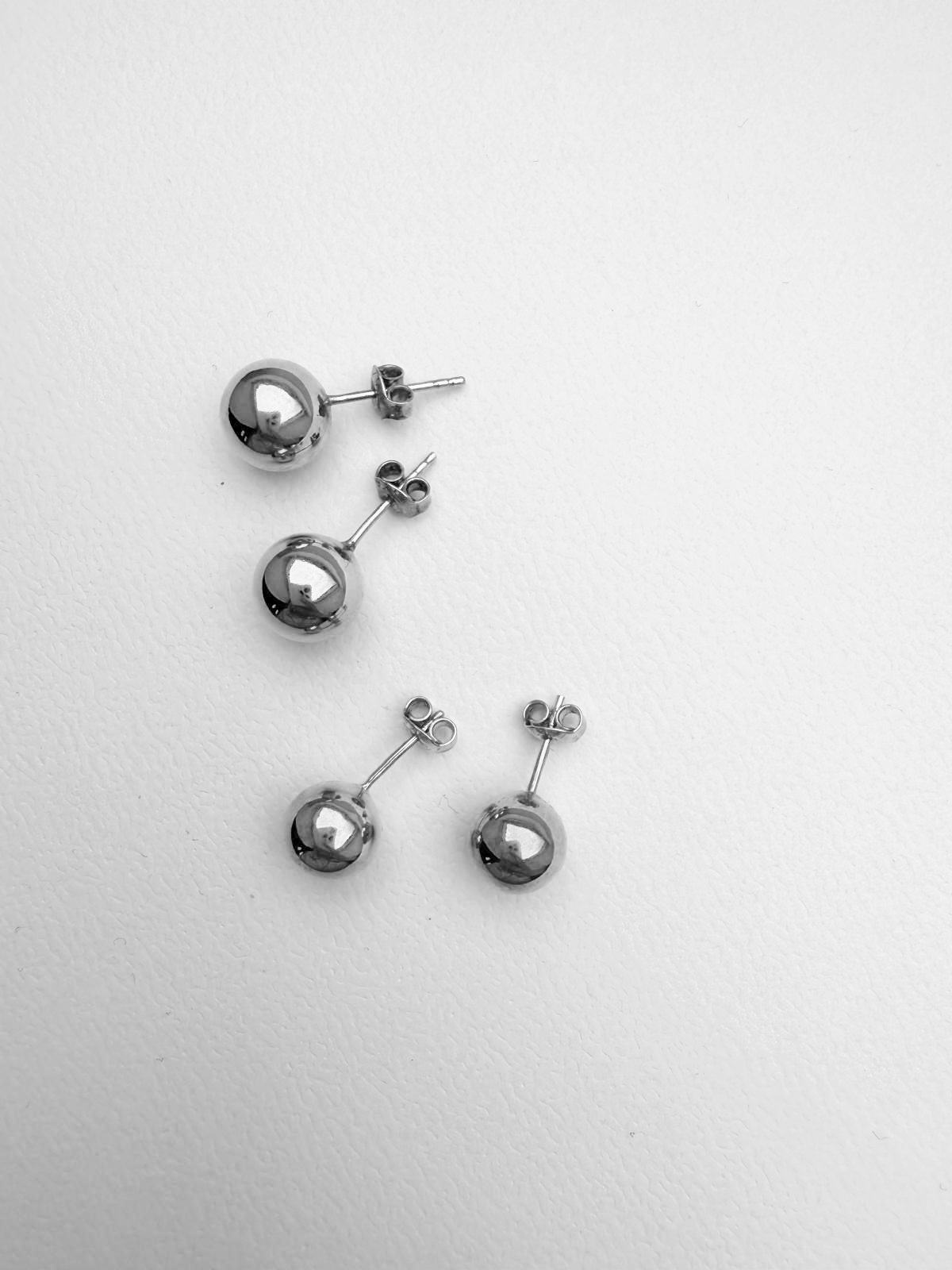 Dostępne w dwóch wariantach: kula większa 10mm, kula mniejsza 9mm. Na zdjęciu modelka posiada opcję kolczyków z kulą 10mm.