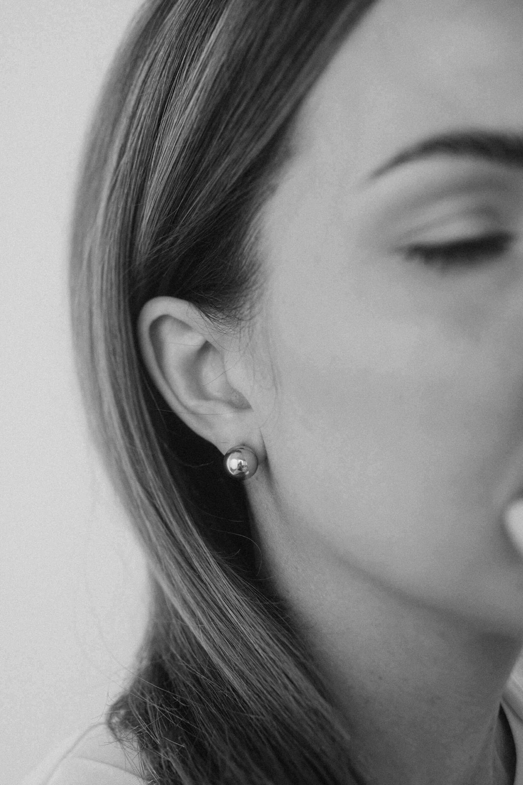 SPHERE ESSENCE – kolekcja bazująca na kuli i czystej, prostej formie koła. Kolczyki wykonane ręcznie z wysokiej jakości próby srebra 925.
