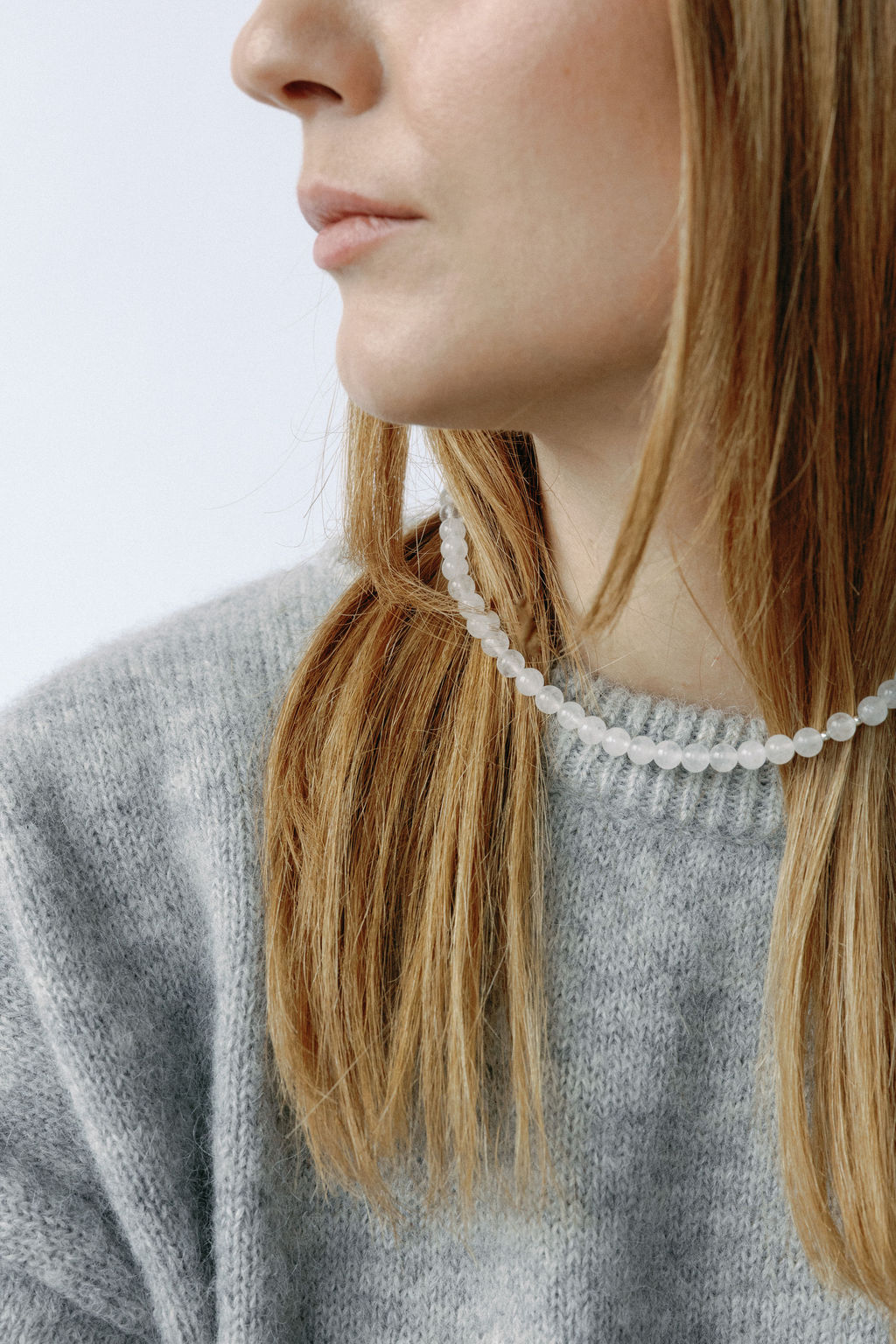 Naszyjnik długości 40cm, wykonany ręcznie z minerału oraz elementów srebrnych z wysokiej próby srebra 925 (rozmiar może się wahać +/- 5mm). Kule większe wielkości 6mm.