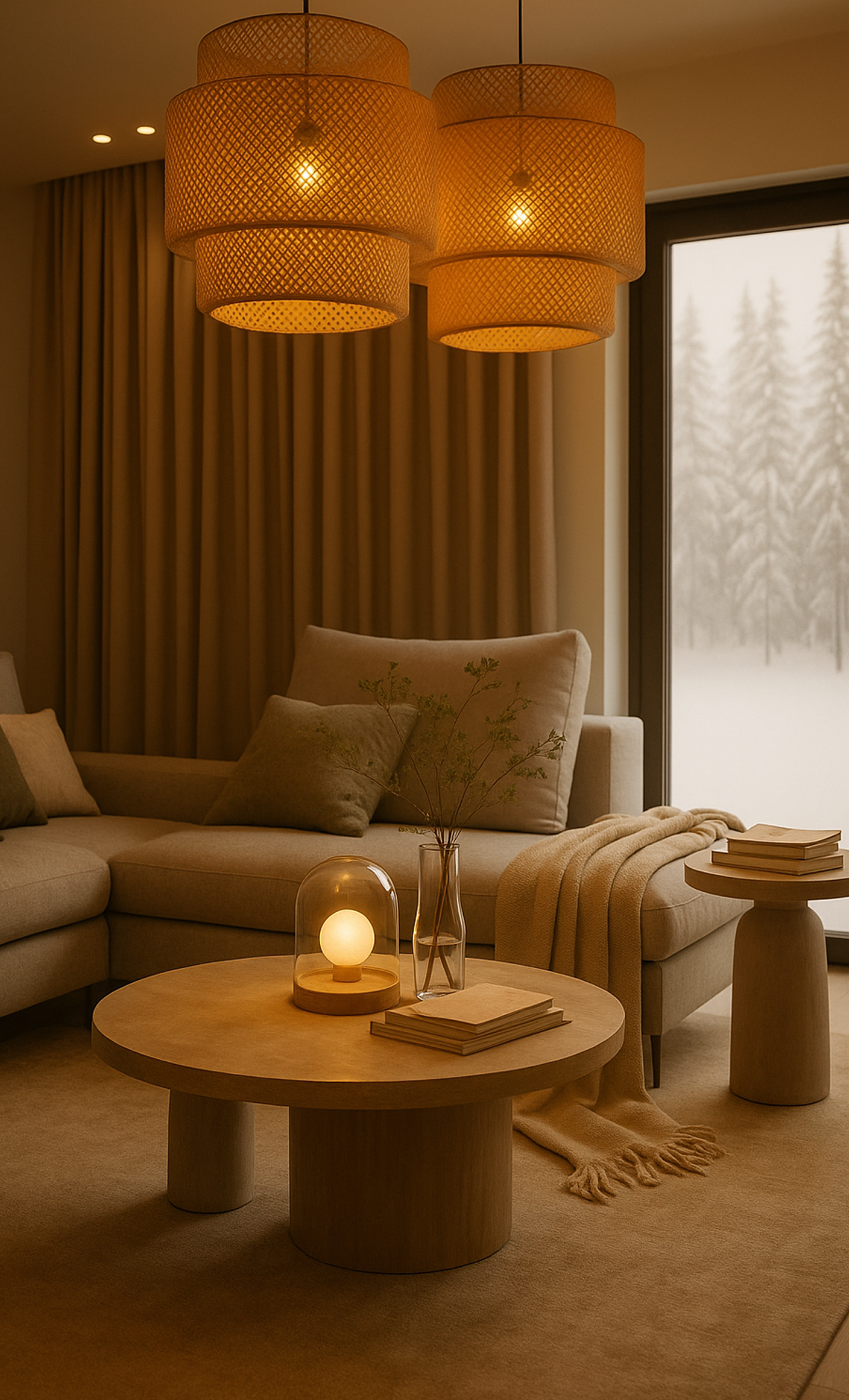 Efektem jest harmonijne, przytulne wnętrze o spokojnym charakterze.