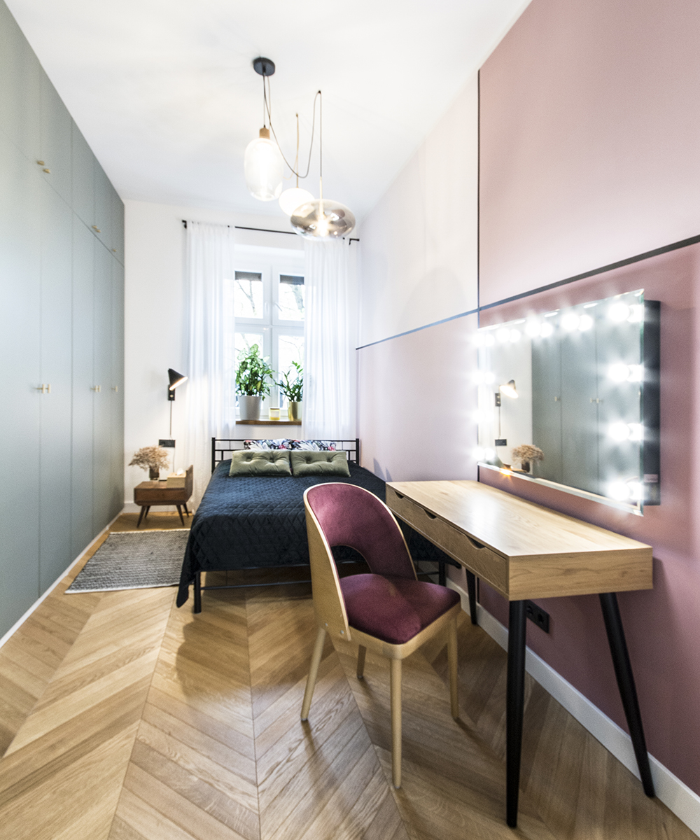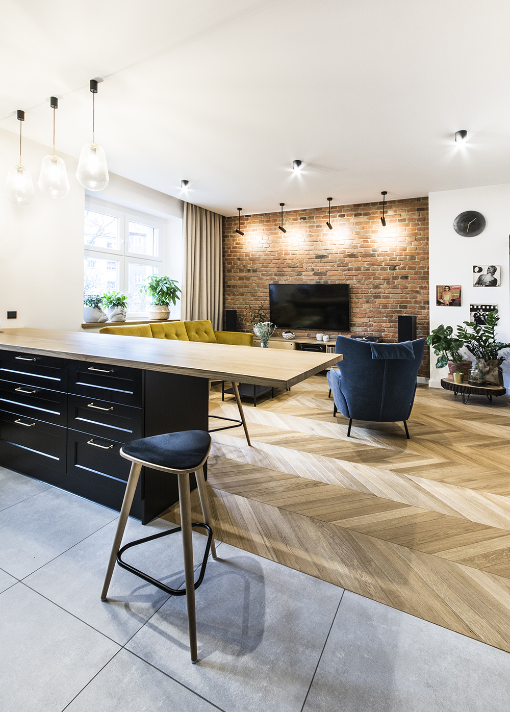 Projekt koncepcyjny oraz wykonawczy wnętrz mieszkania w gliwickiej kamienicy.